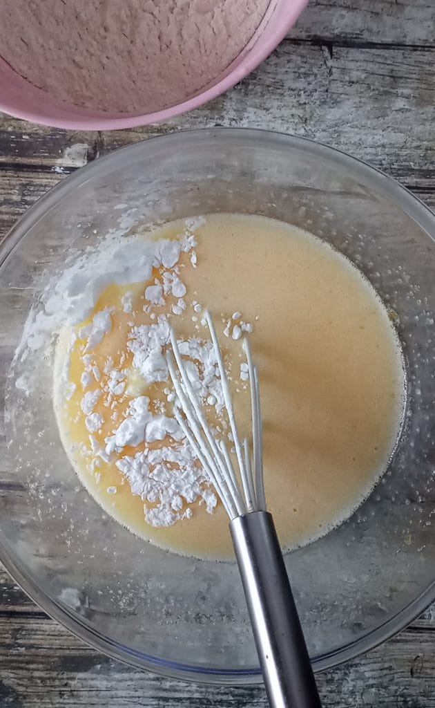 • Despejamos a mistura em uma forma untada e enfarinhada e nivelamos.