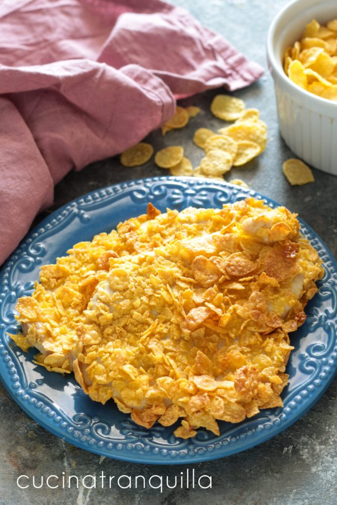 Filés de frango crocantes com corn flakes, assados no forno ou na airfryer, super rápidos de preparar. Ideais com uma empanatura feita com ovos; como alternativa, você pode passar um pouco de azeite de oliva extra virgem se quiser evitar esse ingrediente. Perfeito para aproveitar corn flakes quebrados ou que sobraram de outras receitas; para completar esta receita bastam pouquíssimos outros ingredientes, aos quais você pode acrescentar ervas aromáticas a gosto ou páprica, para sabores sempre diferentes. Você também pode utilizar filés de frango no lugar do peito inteiro ou coxas desossadas. Enfim, espaço para a criatividade para uma receita simples e rápida. Aqui embaixo deixo algumas ideias para fazer filés deliciosos, enquanto no final da receita, completa com fotos passo a passo, você também encontra respostas rápidas para suas dúvidas sobre esta receita.