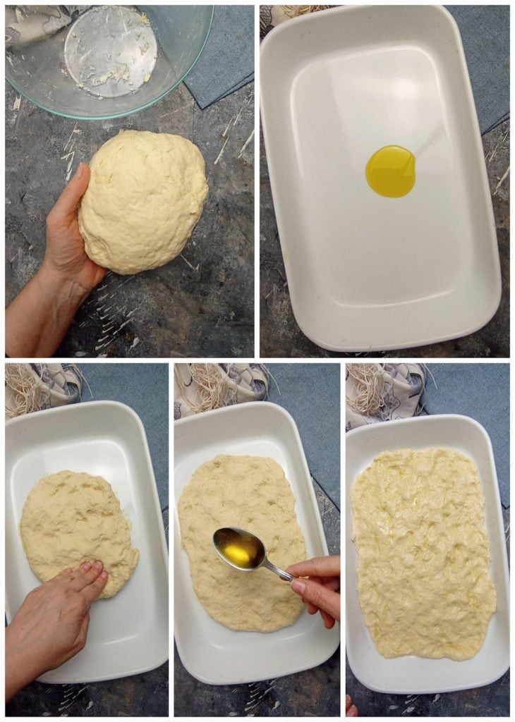Adicione mais azeite na superfície, continuando a estender a massa até as bordas.