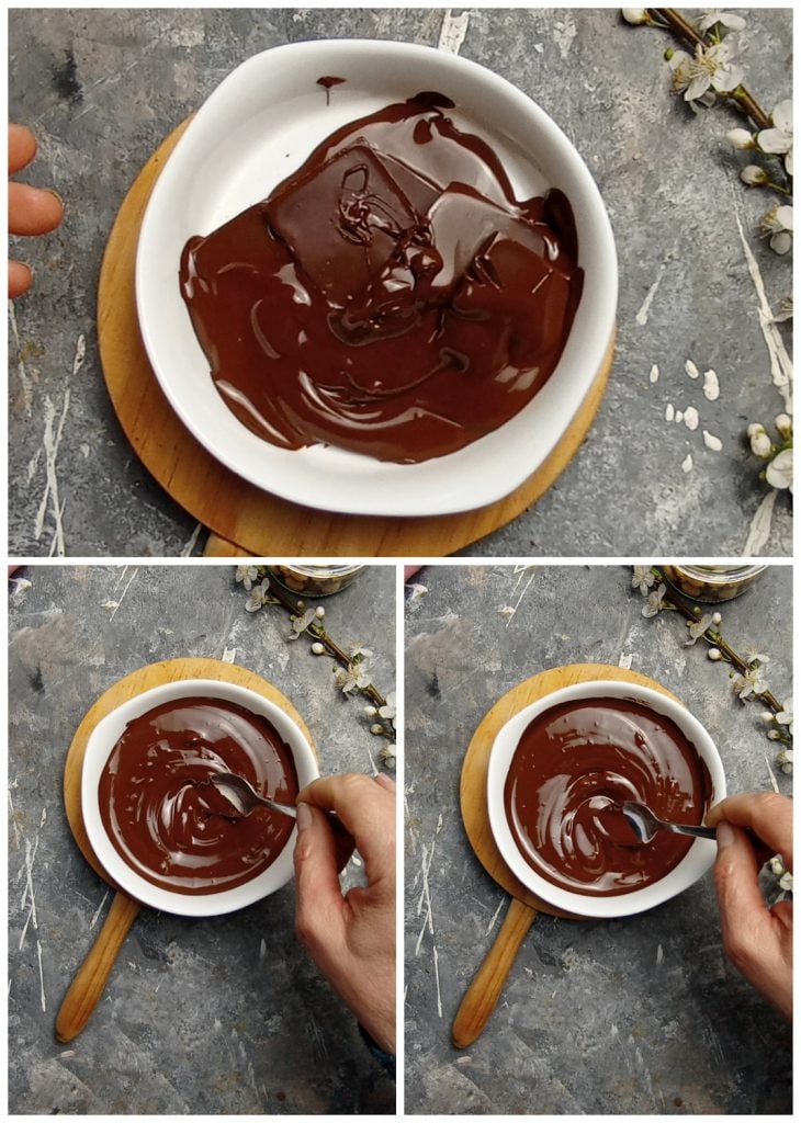 • Para realizar as Folhas de chocolate amargo, primeiro, derreta o chocolate amargo.
