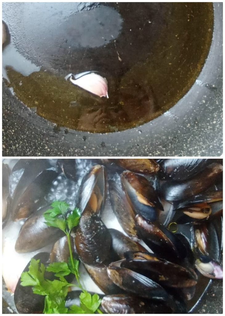 Adicione os mexilhões e a salsa e cozinhe por 6-8 minutos em fogo baixo.