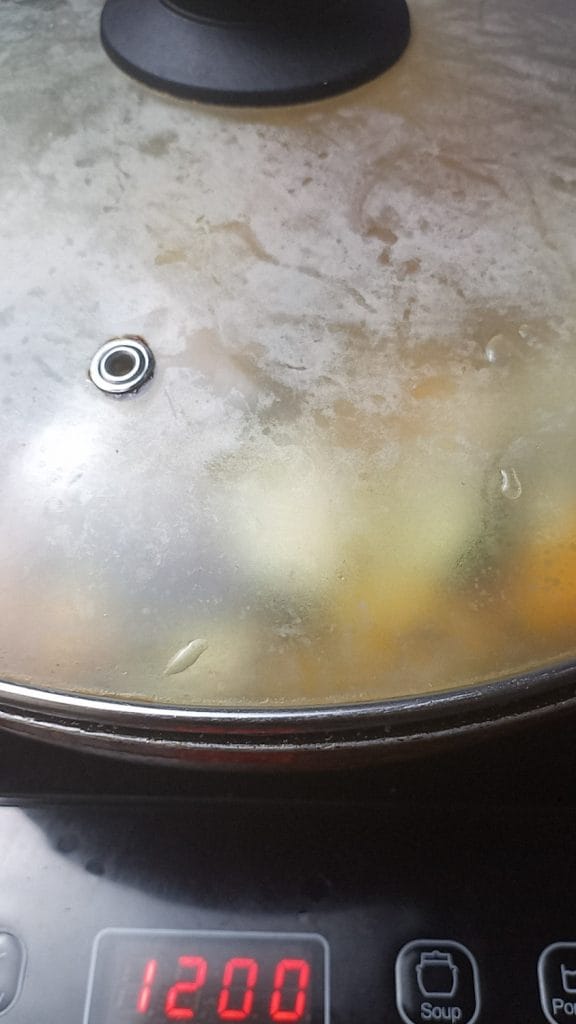 • Salpicamos, mexemos e cobrimos com uma tampa, mexendo os legumes de vez em quando e cozinhando em fogo baixo por 10 minutos.