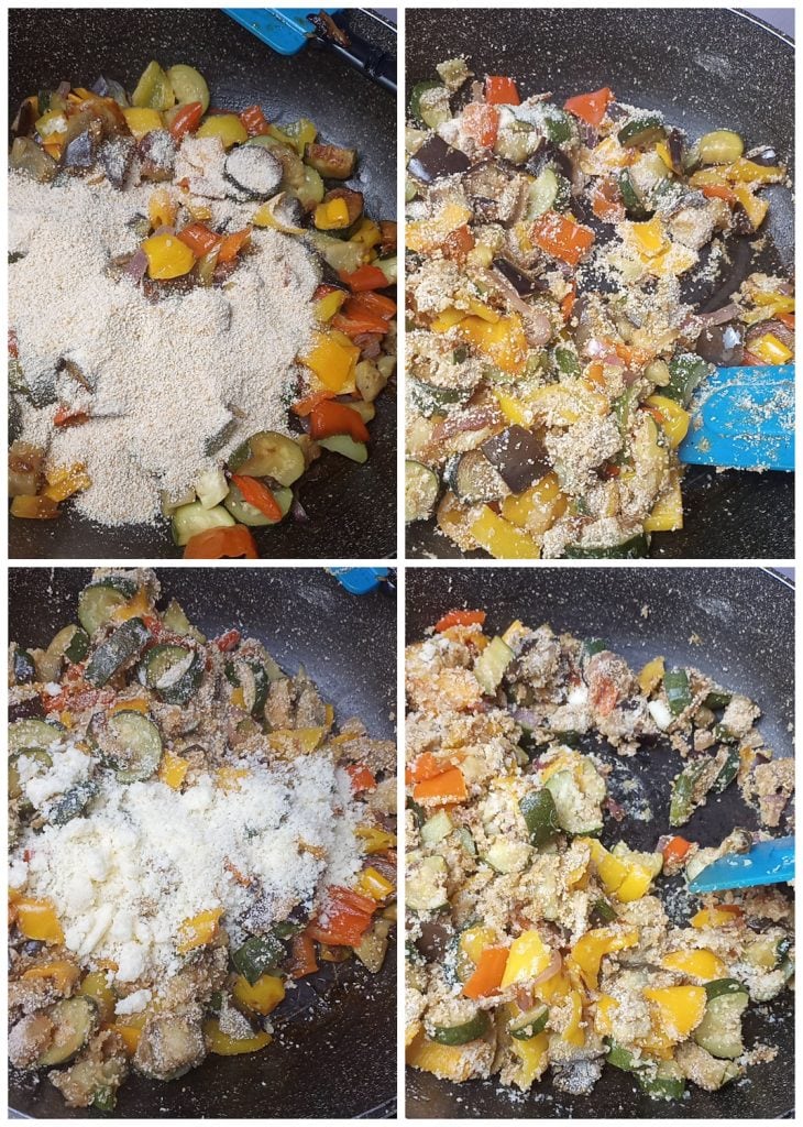 Certamente, preste atenção aos tempos de cozimento, cada legume tem o seu próprio. As berinjelas cortadas em cubos precisam de um pouco mais de tempo de cozimento em relação às abobrinhas e aos pimentões.