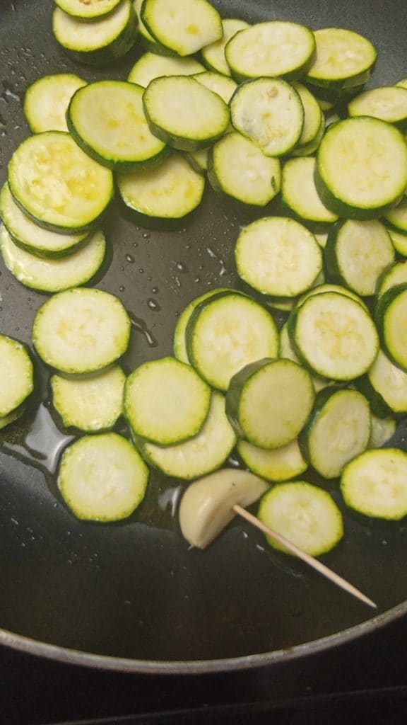 Junte as abobrinhas e deixe cozinhar em fogo baixo por 5 minutos, mexendo de vez em quando.