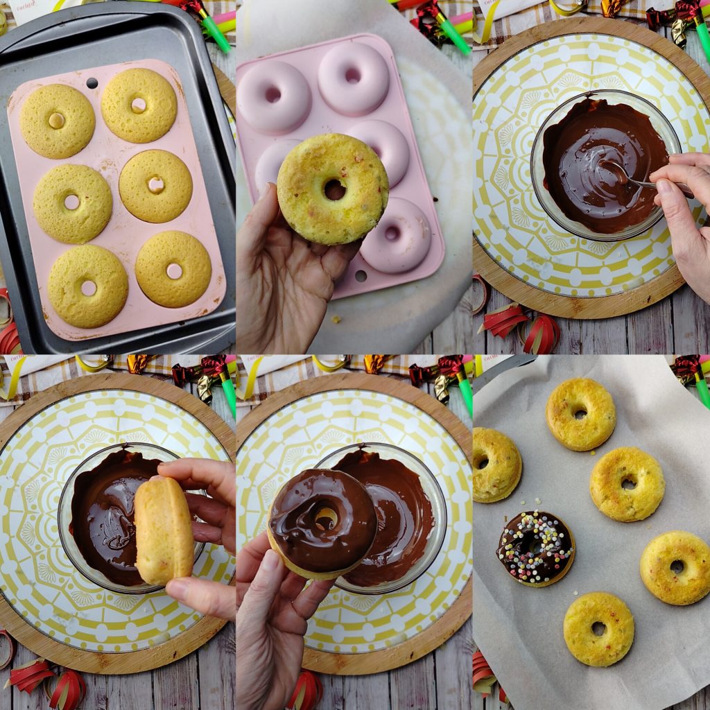 Muffins rosquinha sem glúten cobertos com chocolate amargo, deliciosos donuts fáceis de fazer sem massas complicadas. De fato, este doce tem a típica consistência macia dos muffins, mas a forma é a das rosquinhas clássicas, feitas com uma prática forma de silicone. A farinha utilizada é a de arroz, uma das minhas preferidas quando se trata de fazer doces sem glúten. E estas rosquinhas são tão coloridas que serão perfeitas até mesmo para o carnaval!!! Abaixo, deixo outras ideias legais para fazer na festa mais colorida e divertida do ano, enquanto no final da receita respondo às perguntas mais comuns.