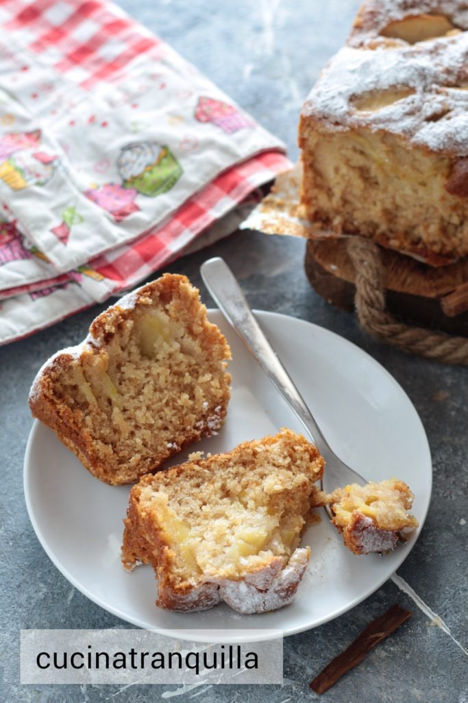 Para um resultado mais gostoso, podemos decorar o Plumcake vegano com suco de maçã com açúcar de confeiteiro.