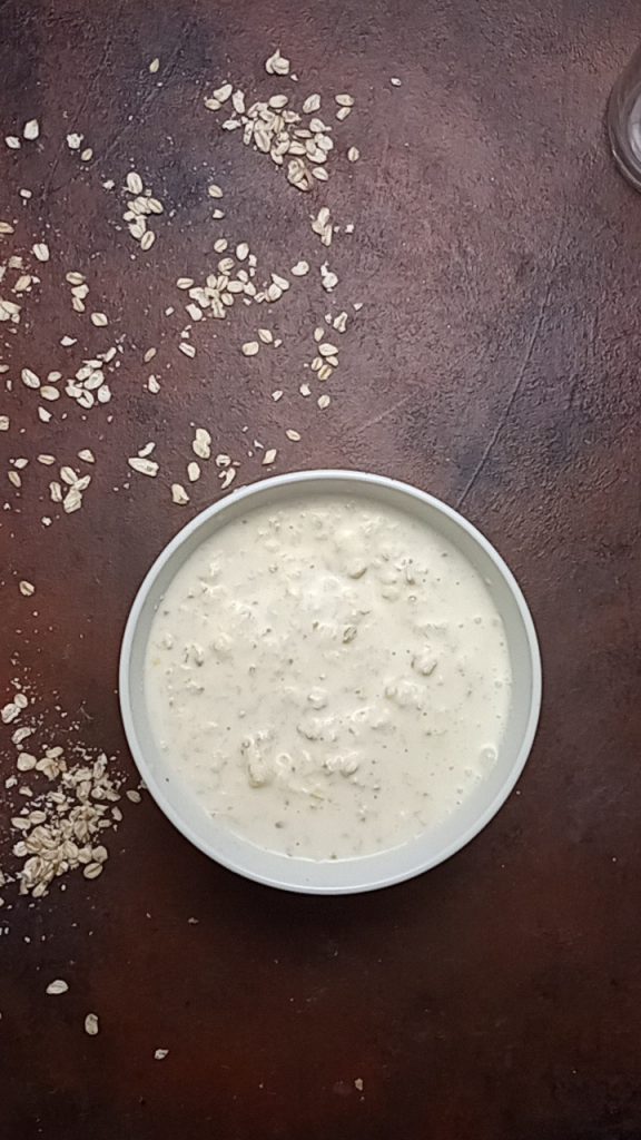 • Colocamos os flocos de aveia em uma tigela e adicionamos a água.