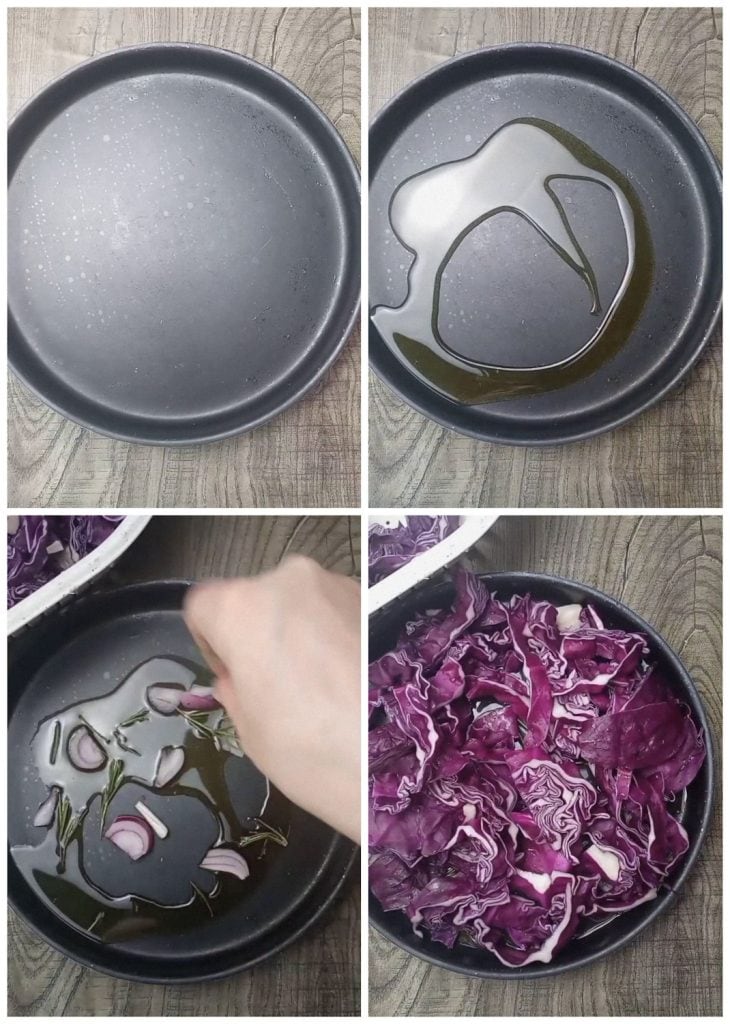 Retire a forma com o repolho, adicione duas colheres de azeite e misture.