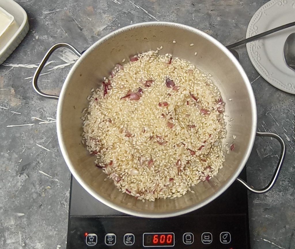 Uma vez feito o caldo e preparados todos os ingredientes, estamos prontos para fazer o risoto, com um pouco de paciência.