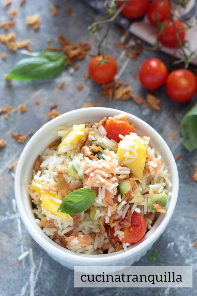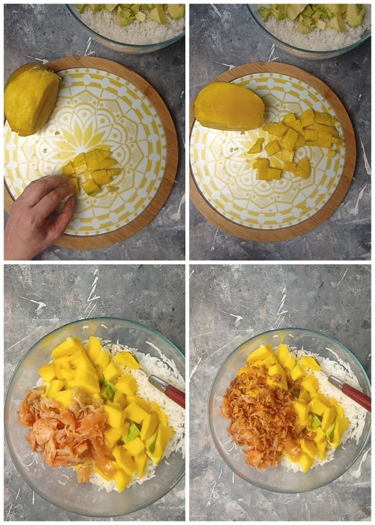 Salada de arroz basmati com manga e abacate, fresca, fácil e rápida de fazer com apenas o cozimento do arroz.