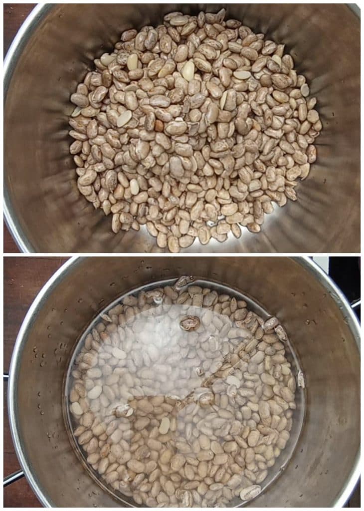Para esta receita, de fato, utilizei feijões borlotti secos, deixados de molho por 12 horas.