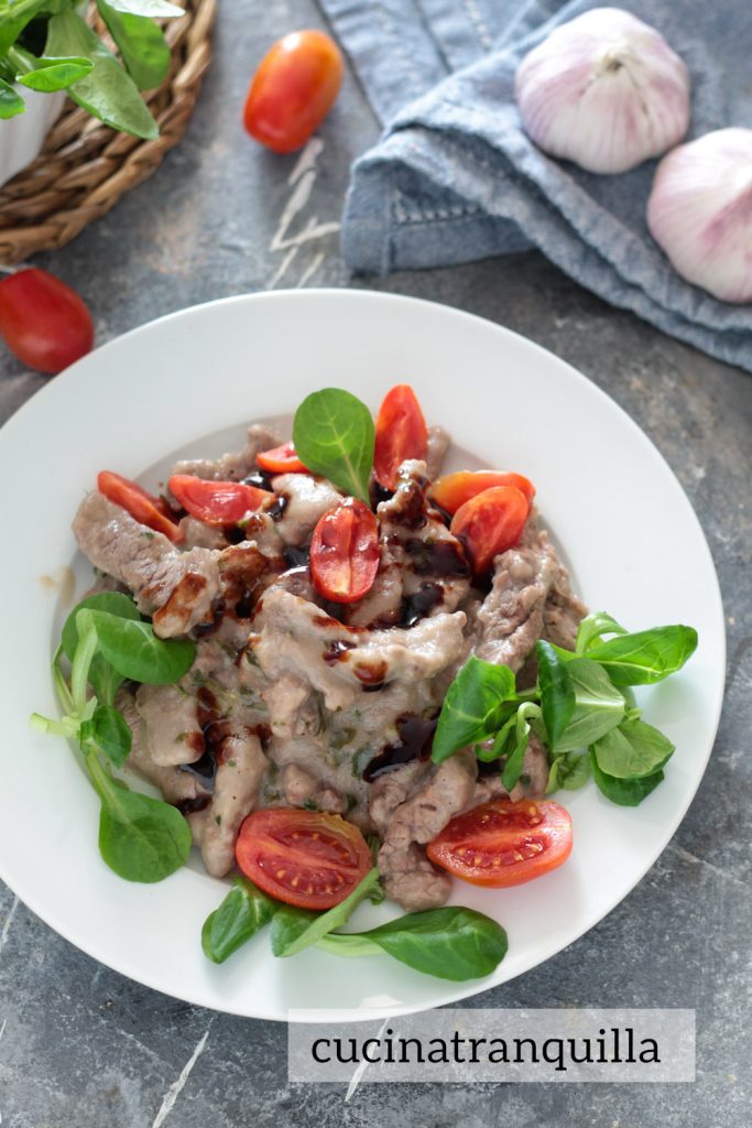 Esta carne é perfeita para servir com vinagre balsâmico e acompanhada de tomatinhos picados e agrião.