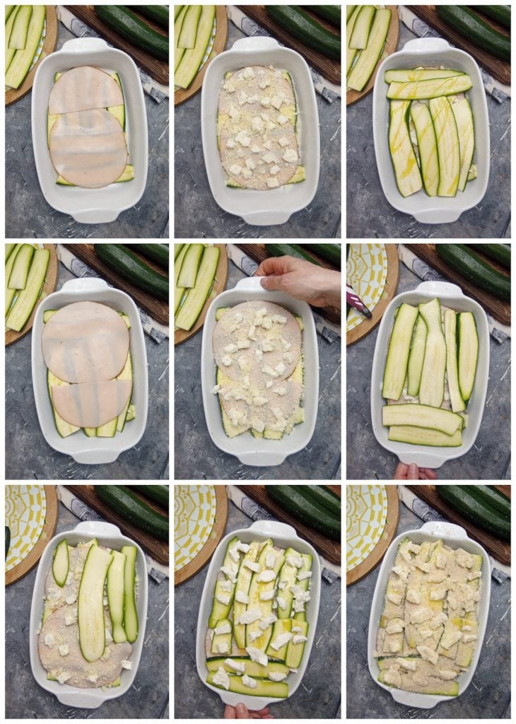 Indicativamente, deixo a quantidade de abobrinha na receita para compor 4 camadas em uma assadeira de 30 cm x 20, mas você pode adaptá-la às assadeiras que tiver, tanto em camadas quanto em tamanho.