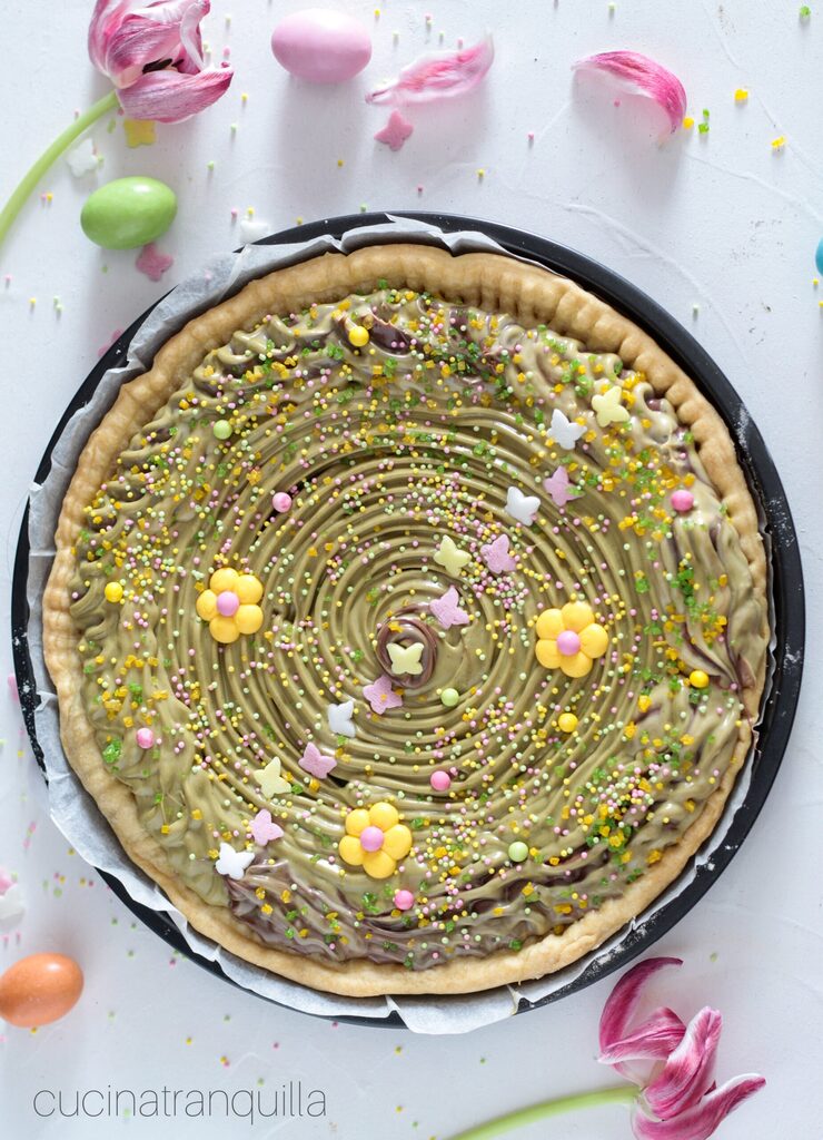 Torta de massa brisée e creme de pistache
