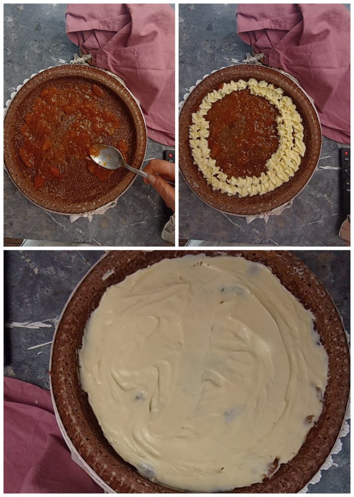 Na base, espalhe a geleia de damasco.