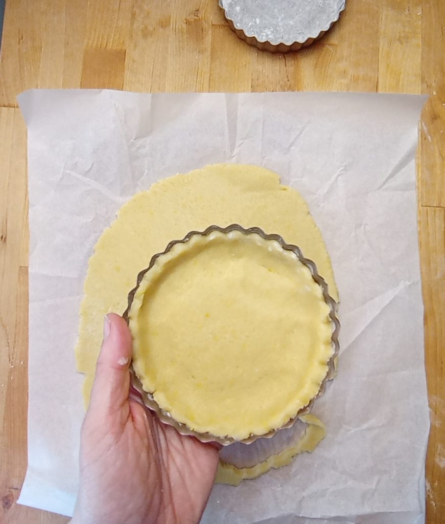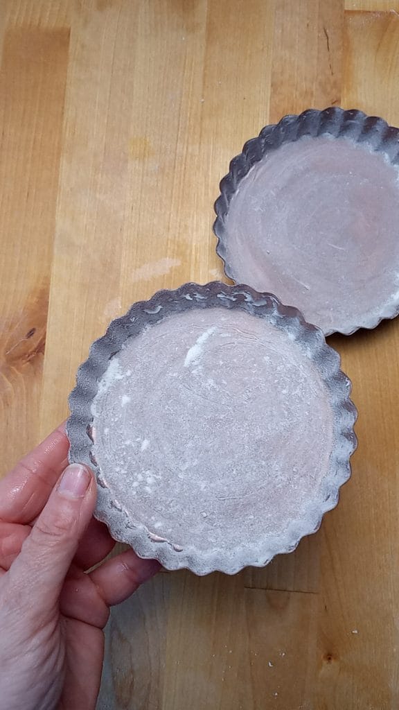 Para fazer essas tortinhas, usei duas formas de 10 cm antiaderentes (com a pouca massa restante, fiz uns biscoitinhos enrolados) e você também pode fazê-las em uma forma para tortinhas (até mesmo tipo muffins) para render mais porções pequenas.