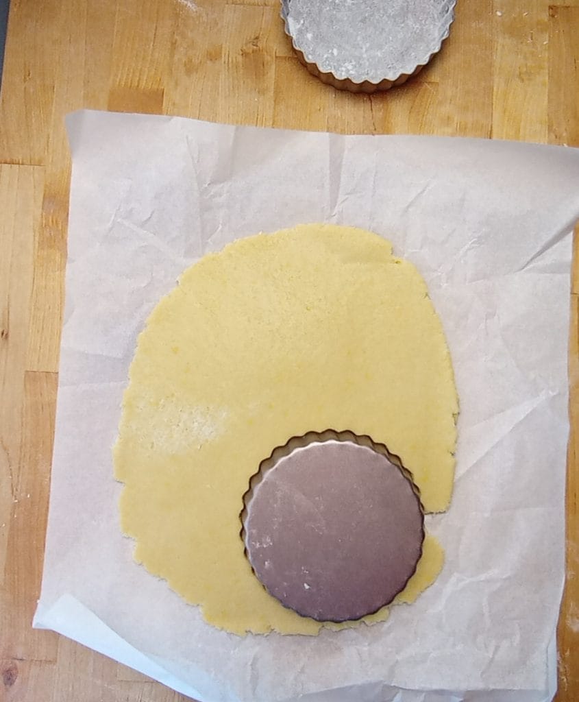 Corte o formato das formas e trabalhe novamente a massa, deixando-a descansar novamente na geladeira, sempre envolvida no papel manteiga, até o momento de fazer as coberturas das tortinhas.