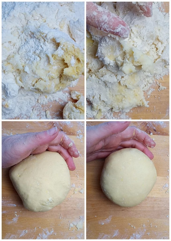 Despeje a massa sobre a bancada e trabalhe-a muito rapidamente até obter uma massa homogênea.