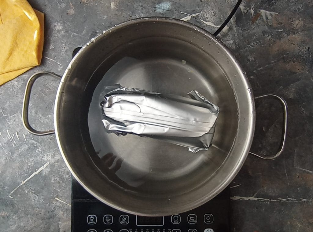 O meu é o pré-cozido, então o mergulhei em água fria e, a partir da fervura, esperei 20 minutos para o cozimento.