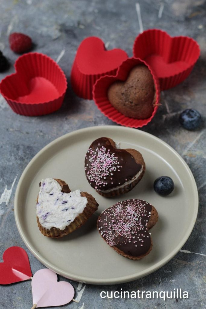 e fazer bolinhos não muito altos para ter docinhos fáceis de saborear, após recheá-los com creme de queijo e mirtilos, emparelhados e decorados.
