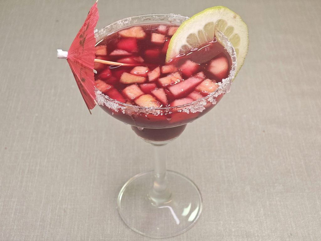 Adicione um pouco de canela, fatias de limão e misture. Deixe descansar na geladeira por algumas horas. Sirva em copos cobertos de açúcar!