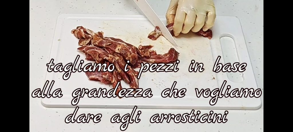 Cortamos os pedaços de acordo com o tamanho que queremos dar aos arrosticini.