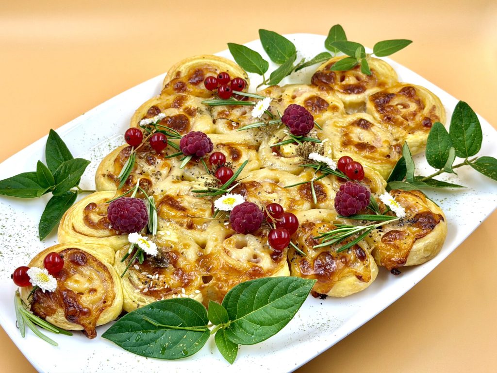 Basta desenrolar a massa folhada, recheá-la com seus ingredientes preferidos, enrolar e assar. O resultado? Uma árvore dourada, crocante e super encantadora, para compartilhar durante o aperitivo ou jantar de Natal.