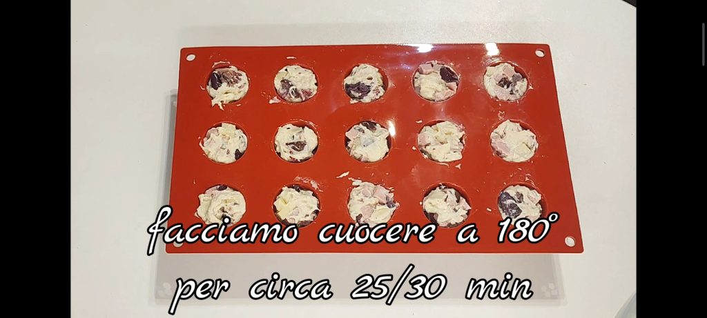 Adicione os frios mistos cortados em cubos, a scamorza cortada e as azeitonas e misture bem. Coloque a mistura obtida nos moldes de babà.