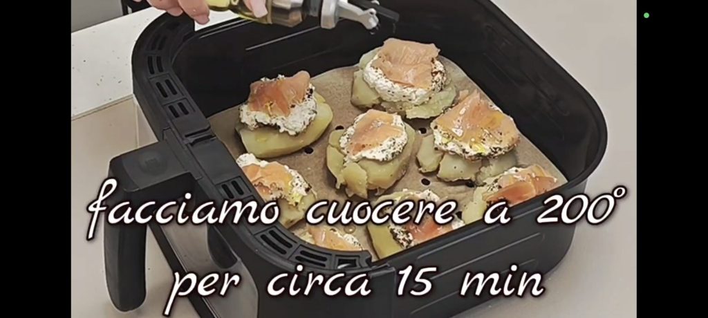 Uma receita deliciosa para preparar em poucos minutos e além disso usei minha “amada” fritadeira sem óleo ☺️. Cozinhei as batatas, depois as amassei e coloquei queijo e salmão por cima, uma verdadeira delícia! Essas batatas são perfeitas para saborear como entrada ou como prato principal!