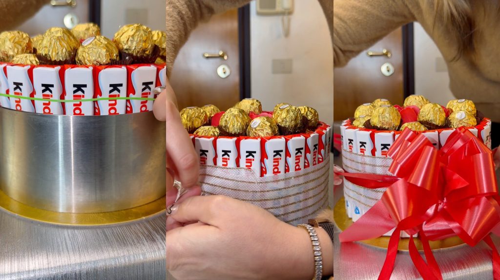 Bolo com chocolates Kinder e Ferrero Rocher: uma ideia de presente espetacular