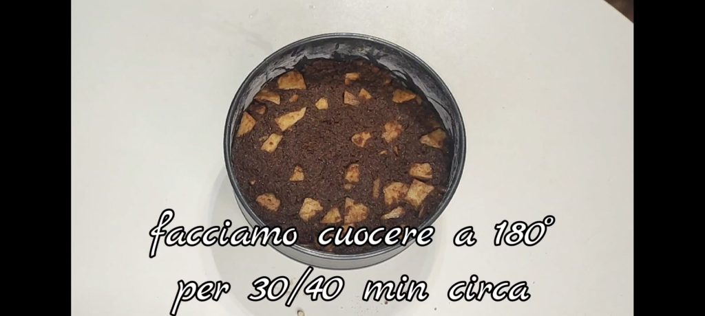 adicionamos ao composto. Misturamos bem e colocamos o composto obtido em uma forma de 18 cm enfarinhada. Compactamos.