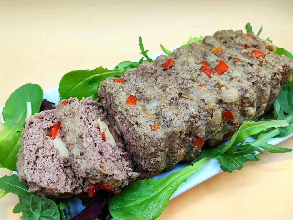 Um bolo de carne moldado em forma de plumcake com adição de pimentão, queijo e sem usar ovos. Uma receita muito simples e rápida de preparar (podemos também prepará-lo e deixá-lo pronto no congelador para imprevistos) e ótima para servir em qualquer dia do ano, desde um simples almoço em família até festas importantes como Natal, Páscoa, Ano Novo, etc. Um segundo prato que podemos acompanhar com qualquer tipo de acompanhamento de legumes a gosto (batatas à savoiarda, abobrinhas gratinadas ao forno, couve-flor na fritadeira sem óleo (air fryer)). Os bolos de carne são muito amados e agradam a todos, há muitas versões porém, desde o clássico até o recheado com diferentes coberturas, tipo: Bolo de carne recheado com cogumelos e scamorza 📌 sem ovos, Bolo de carne cúpula com brócolis sem ovos, Bolo de carne recheado com scamorza e presunto sem ovos, etc