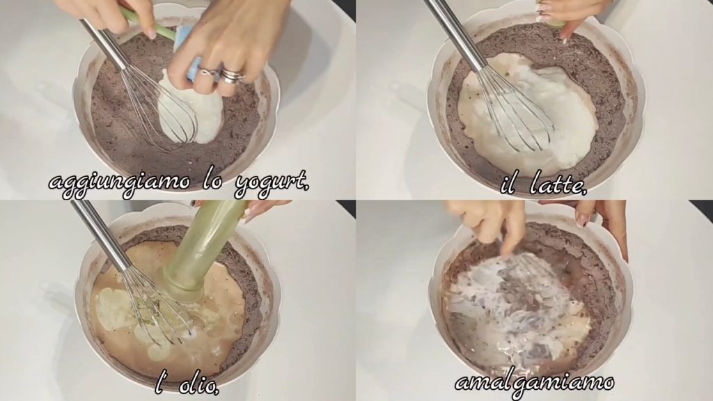 Adicione o iogurte, o leite, o óleo e misture bem.