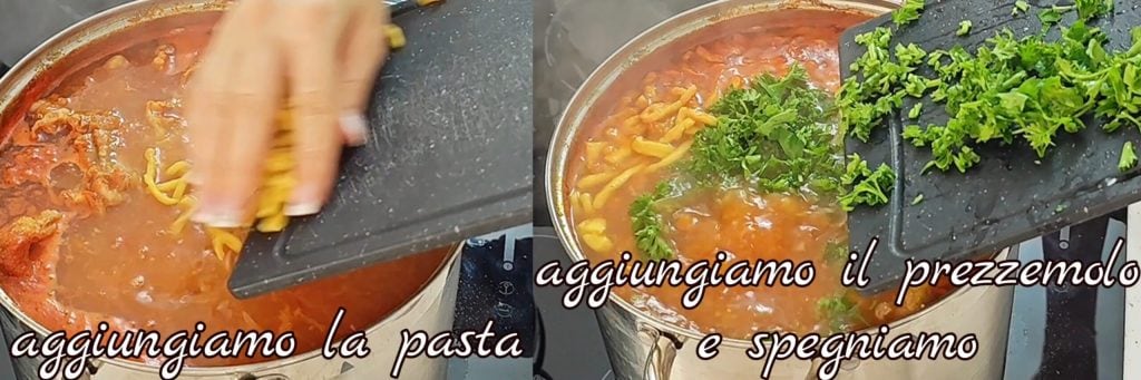 depois estendemos, dobramos e cortamos no tamanho desejado. 5 minutos antes do final do cozimento