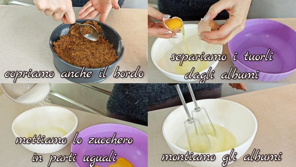 • Adicionamos a ricota, o amido e depois incorporamos delicadamente as claras batidas. Colocamos o composto obtido sobre a base.