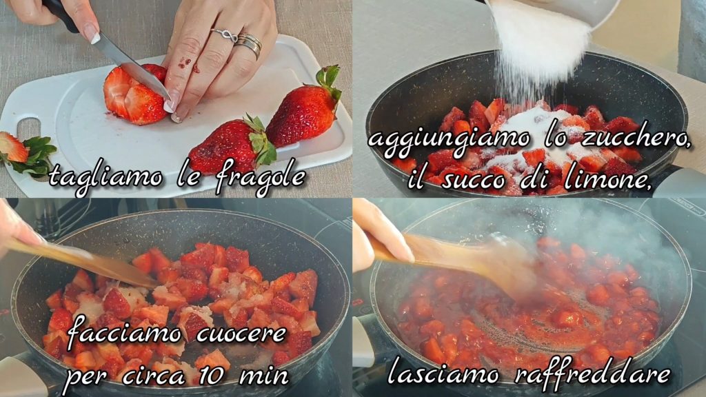 Limpamos e cortamos os morangos, adicionamos o açĂșcar, o suco de limĂŁo e cozinhamos por cerca de 10 min, mexendo de vez em quando. Uma vez pronto, deixamos esfriar!