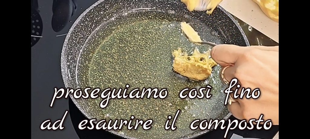 misture. Forme os bolinhos diretamente na frigideira com óleo quente colocando um pouco da mistura usando duas colheres. Cozinhe por alguns minutos e depois vire, continue assim por mais alguns minutos. Quando estiverem prontos, escorra e coloque no papel absorvente.
