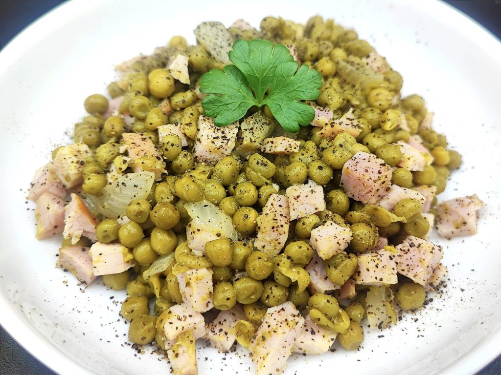 A preparação das ervilhas e presunto cozido é muito simples e rápida, assista ao vídeo AQUI.