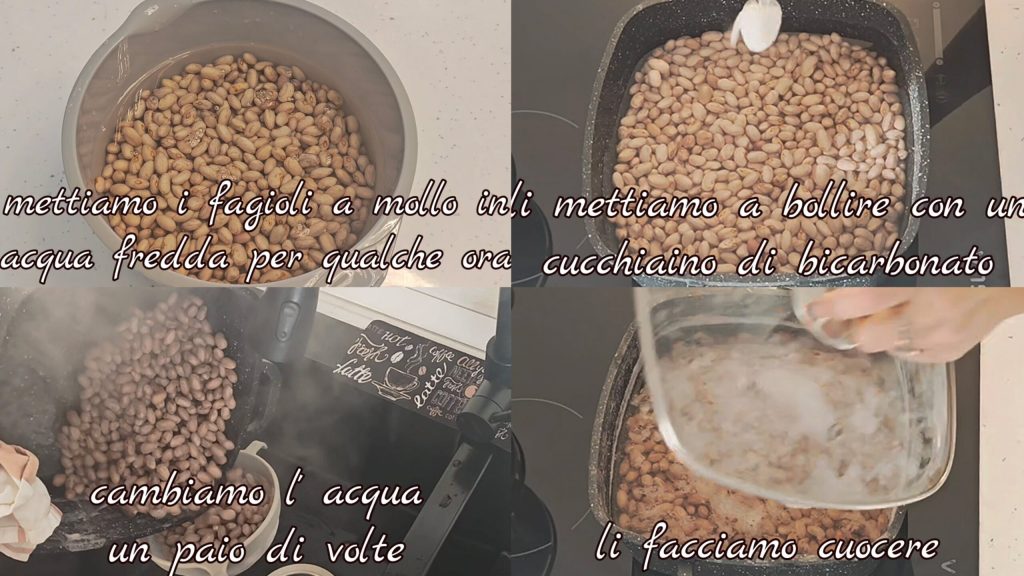 • Para que o feijão cozinhe mais rápido, recomendo deixá-los de molho em água fria na noite anterior ou pelo menos algumas horas antes de cozinhá-los. Depois de deixá-los de molho, cozinhamos com uma colher de chá de bicarbonato. Mudamos a água algumas vezes.
