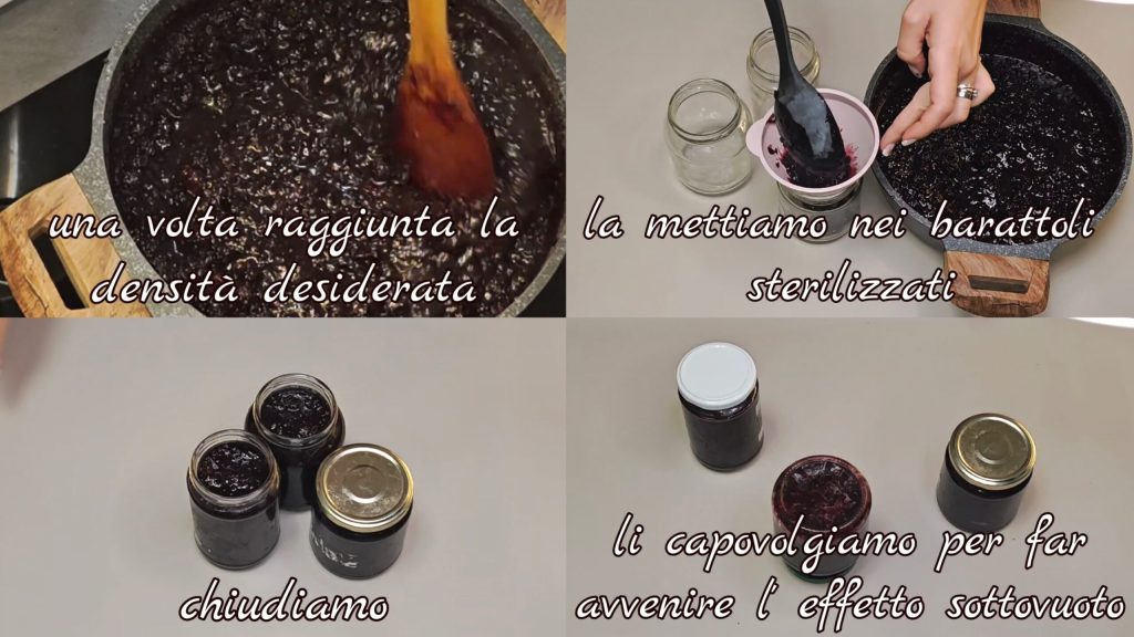 Uma vez alcançada a densidade desejada, colocamos nos potes previamente esterilizados. Fechamos os potes e os viramos para criar o efeito de vácuo. Desta forma, será conservado por cerca de um ano, se quiser conservar por mais tempo, ferva novamente os potes por cerca de 20 minutos.