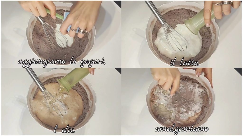 Adicionamos o iogurte, o leite, o óleo e misturamos.