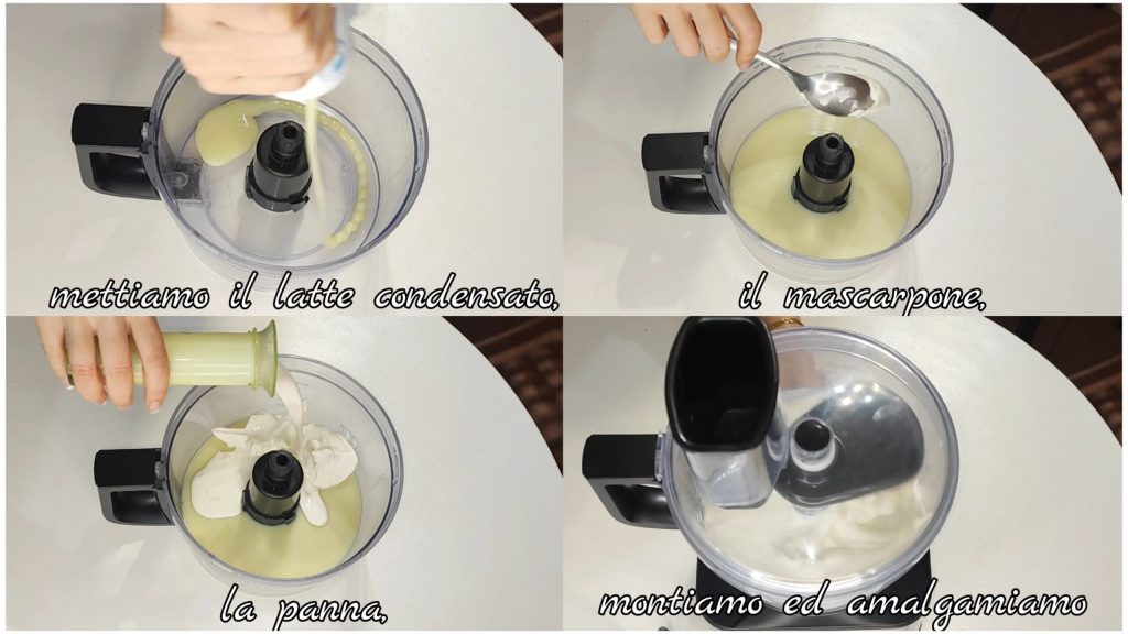 Em uma tigela, colocamos o leite condensado, o mascarpone, o chantilly e batemos.