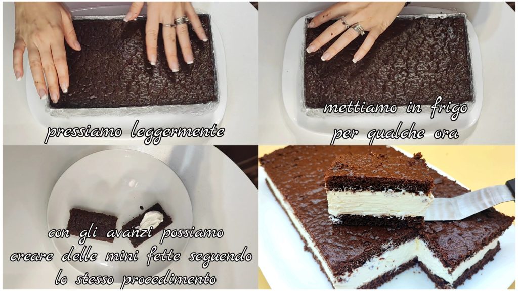 pressionamos ligeiramente. Colocamos na geladeira por algumas horas. Com as sobras, podemos criar mini fatias seguindo o mesmo procedimento.