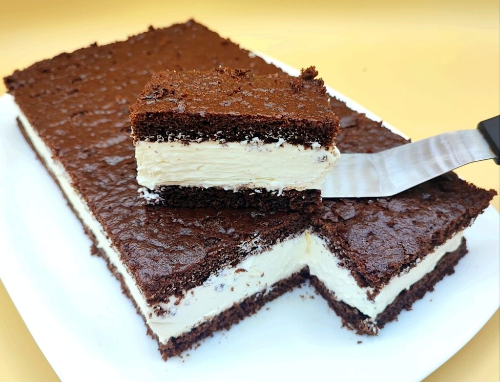 Um dos melhores doces que já fiz!!! Quando você começa a comer é difícil parar 😁🙈 Um doce muito semelhante ao original (na verdade, mais gostoso) feito com uma base de cacau sem ovo e um recheio macio de creme com mascarpone, chantilly e leite condensado!