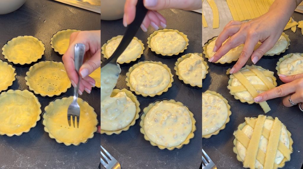 Essas pequenas pastiere mantêm todo o aroma da receita original: ricota, trigo cozido, flor de laranjeira e raspas de frutas cítricas. O resultado é uma sobremesa crocante e cremosa, perfeita para saborear ao final da refeição ou para levar à mesa no almoço de Páscoa.