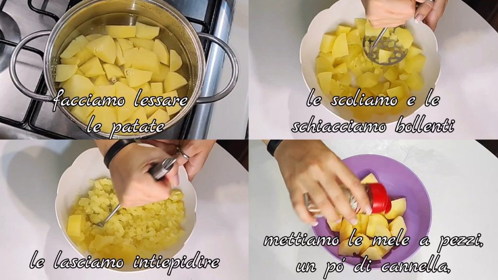 Um doce muito particular e pouco conhecido típico da Romênia que é feito com maçãs ou com ameixas! No ano passado eu os preparei com ameixas, então este ano escolhi as maçãs, mas eu vou te dizer mais, você pode fazê-los também com outros tipos de frutas ao seu gosto (peras, damascos, uvas, etc). Um doce muito simples de preparar com uma massa feita com batatas, farinha, ovos e cobertura de farinha de rosca, manteiga e açúcar. Experimente-os porque são deliciosos!