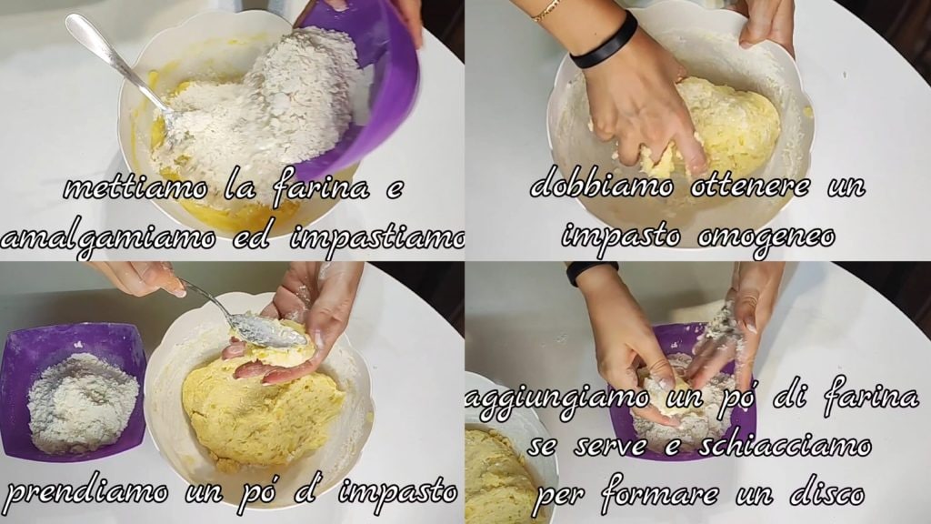 • Colocamos a farinha, misturamos e amassamos até obter uma mistura homogênea.