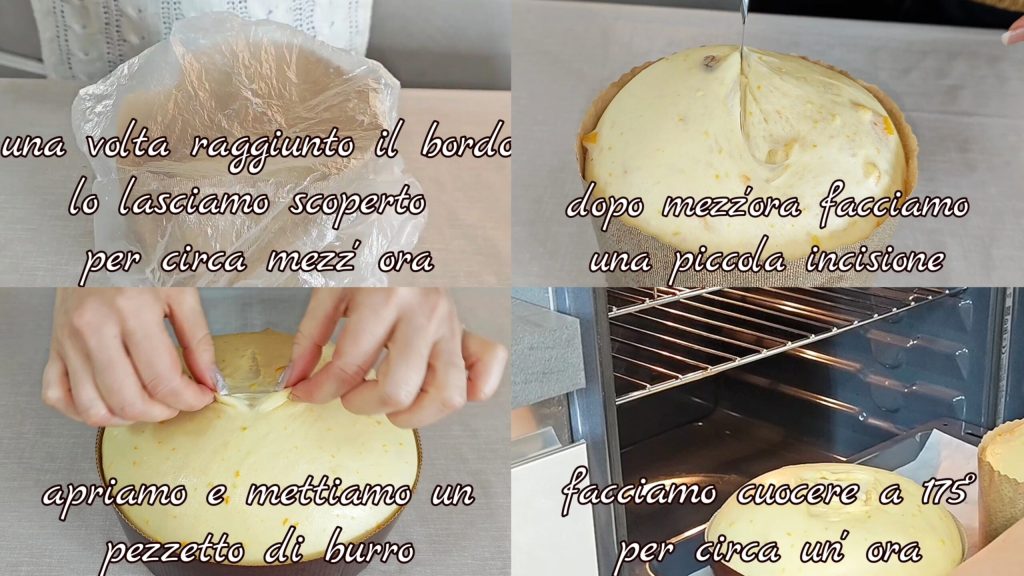Uma vez que elas atingem o topo, descobrimos e esperamos cerca de 30 minutos, depois com um estilete fazemos uma pequena incisão central. Abrimos um pouco e adicionamos um pedacinho de manteiga. Assamos a 175°C por cerca de uma hora. Assim que estiverem prontos, deixem esfriar de cabeça para baixo.