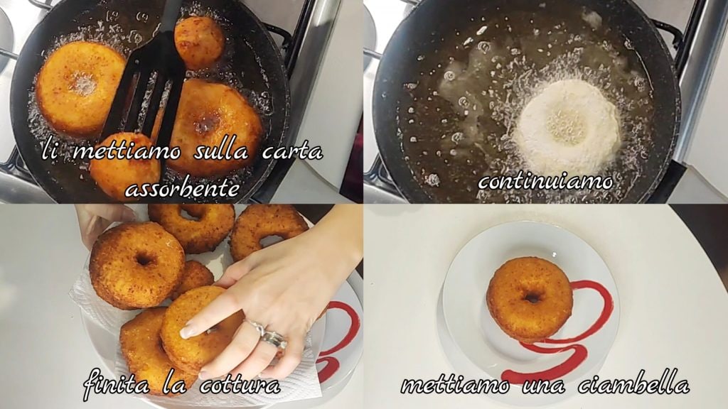 Colocamos no papel absorvente. Após a fritura, colocamos uma rosquinha,