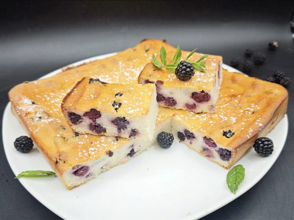 Uma sobremesa deliciosa feita com ricota fresca, ovos, açúcar, amoras e pouquíssima farinha. Os doces com ricota sempre agradam a todos, mas especialmente a mim 😂 já que há algum tempo fiz esses quadradinhos simples e gostei muito, decidi refazê-los adicionando fruta fresca, e escolhi as amoras! Se você não gosta de amoras, pode escolher qualquer outro tipo de fruta de sua preferência! Se você gosta da combinação ricota e amoras, experimente também o Bolo de amoras com ricota e limão! Recomendo também dar uma olhada na Geleia de amoras.